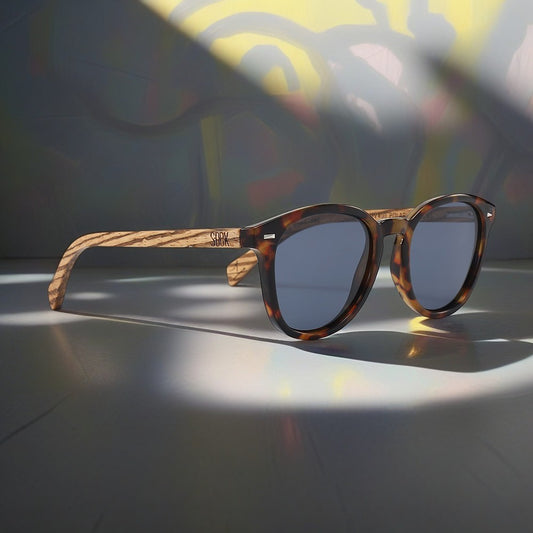 Soek Taine Tort Blue Lens Sunglasses - Tort Frame - Walnut Wooden Arms